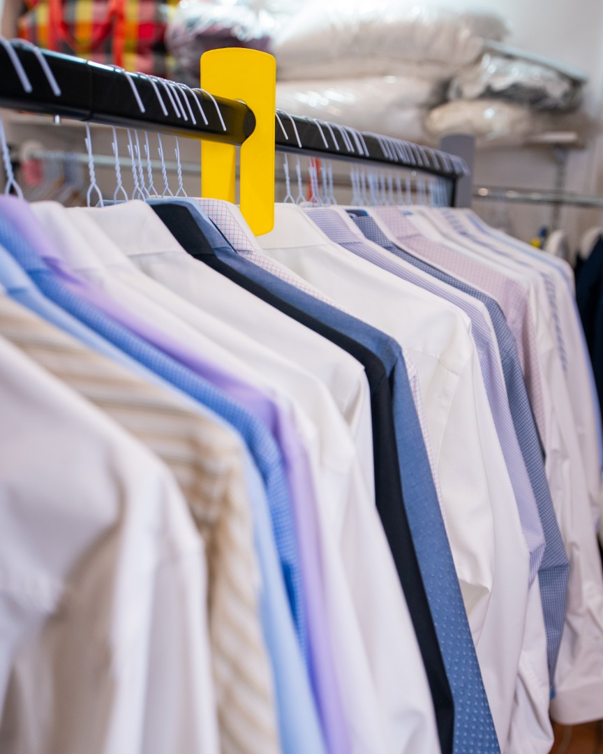 Items are professionally steamed, pressed, and hung on protective hangers. Delicate pieces are covered for safe collection, with folding available upon request.